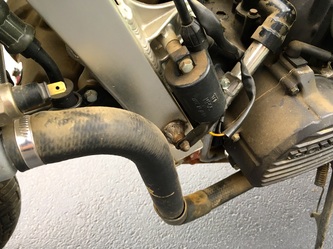 This bike had a Virginia license plate mounted with a 1993 sticker in place. The bodywork is mis-matched and pretty rough in places, and there's a period Kerker 4-into-1 mounted. But, the bike is complete and all the indicators support the indicated mileage. My seller says he bought the bike new and the title backs that up. After the usual checks the engine fired up and ran beautifully. So what's the plan? Well, I have a complete set of restored red/white/blue body panels, including the wheels and a seat cowl, just waiting for the right bike. This RC24 will be taken back to original, restored condition, complete with a like-new set of OEM mufflers. I've already had a full set of engine covers powder coated a textured bronze — clutch, alternator and valve covers. NOS turn signals, updated brake lines/pads and Samco coolant hoses are also in the mix. The front suspension will be treated to Progressive springs and the rear shock rebuilt and upgraded by Jamie Daugherty. This one will be a stunner, and the low mileage just a bonus. Stay tuned. (click on an image to enlarge)